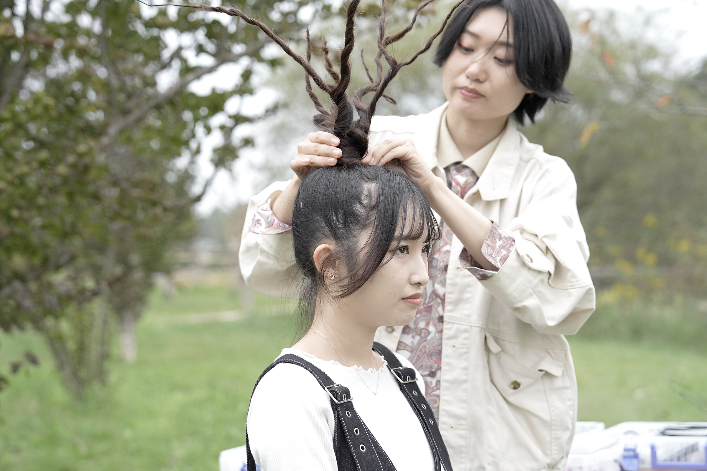 *整髪料はなるべく使用せず、地毛と芯材でセットを行います。