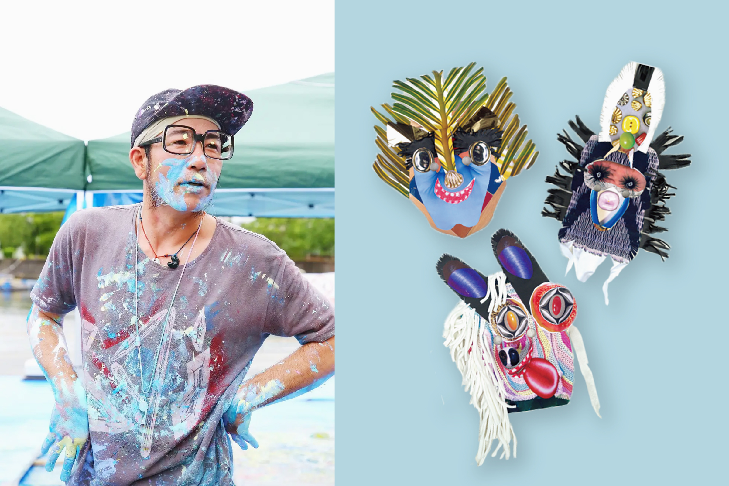精霊をモチーフに絵画制作をしている小澄源太による当日参加OKのワークショップ。写真や絵などがプリントされた厚紙を自由に切り貼りして、自分の心の中に